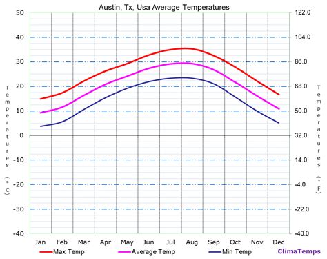 In summary, the average temperature in Austin varies throughout the year, with hot summers and mild winters. July and August are the hottest months, while December and January are the coldest. By knowing the average temperature by month, you can plan your activities and clothing choices accordingly to ensure a comfortable and enjoyable trip to Austin, Texas.
